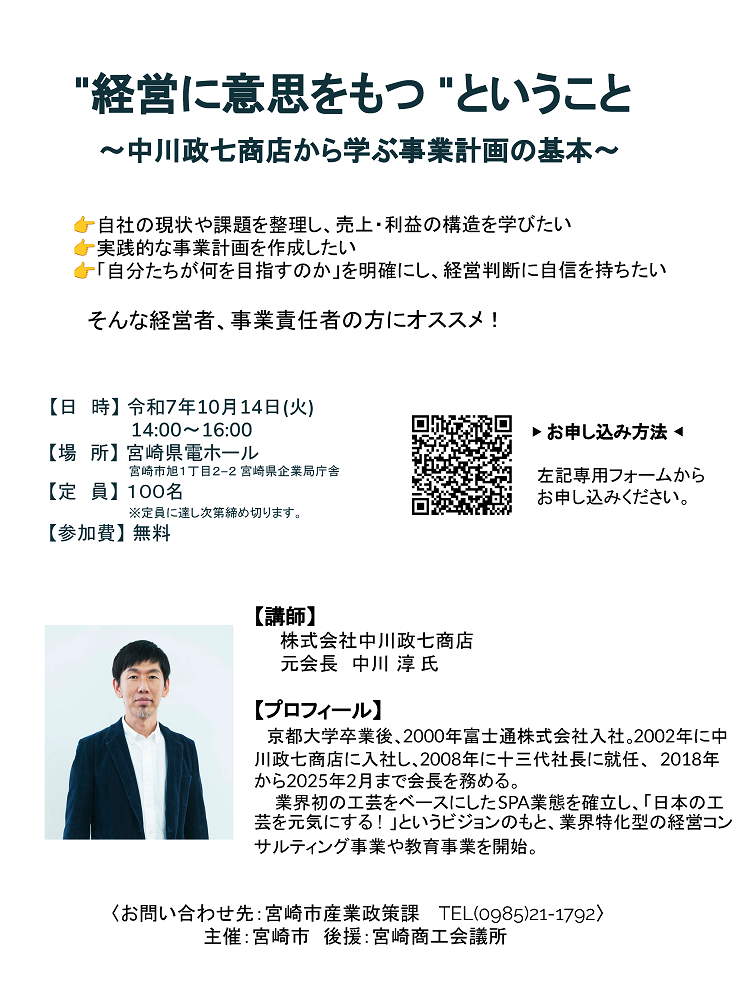 ・宮崎市ホームページ:【中小企業経営改善】「事業計画講座」受講者募集開始!