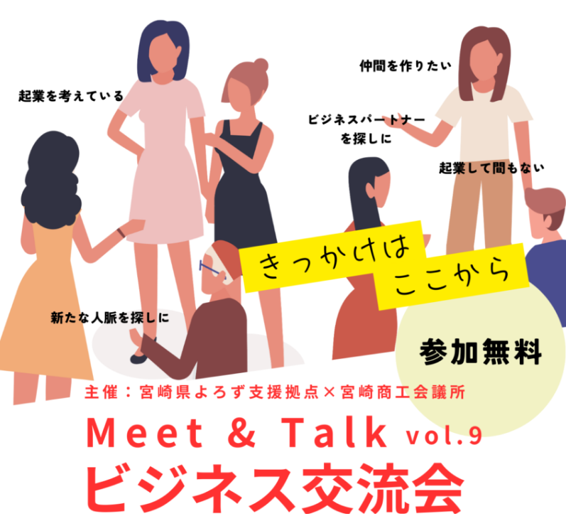 宮崎県よろず支援拠点と宮崎商工会議所のコラボイベント「Meet&Talk ビジネス交流会」、大好評につき、9回目の開催が決定しました!!