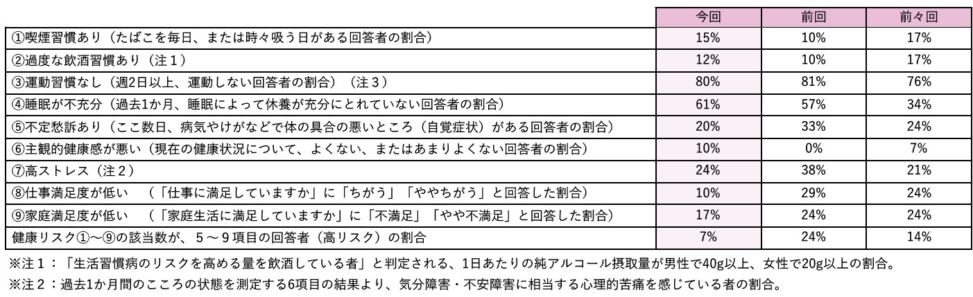 【健康リスク9項目とそのリスク該当率】※数値が小さい方が良い状態